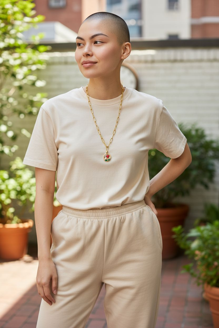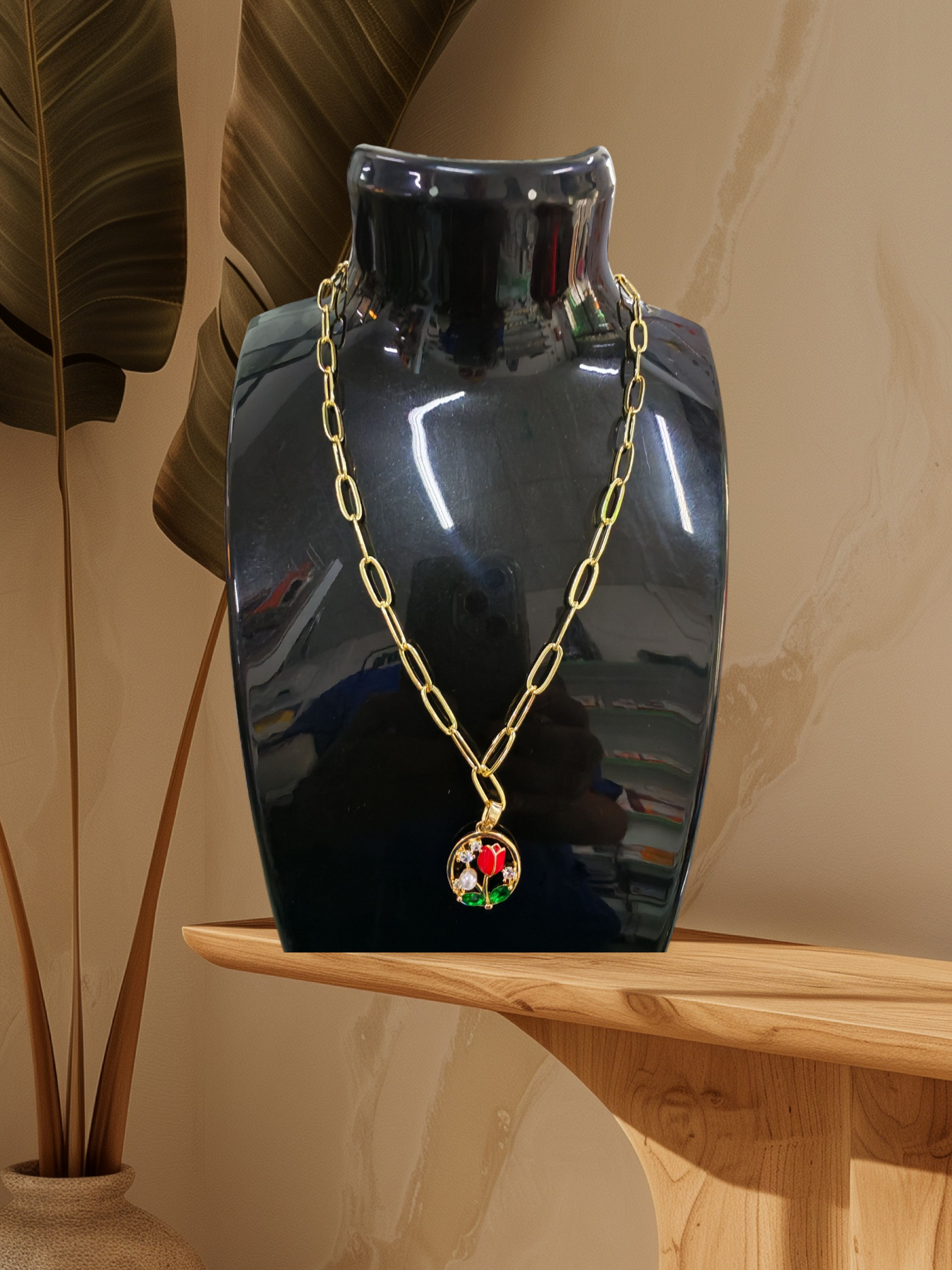 Cadena Dorada de Cuentas Grandes Con Dije de Rosa